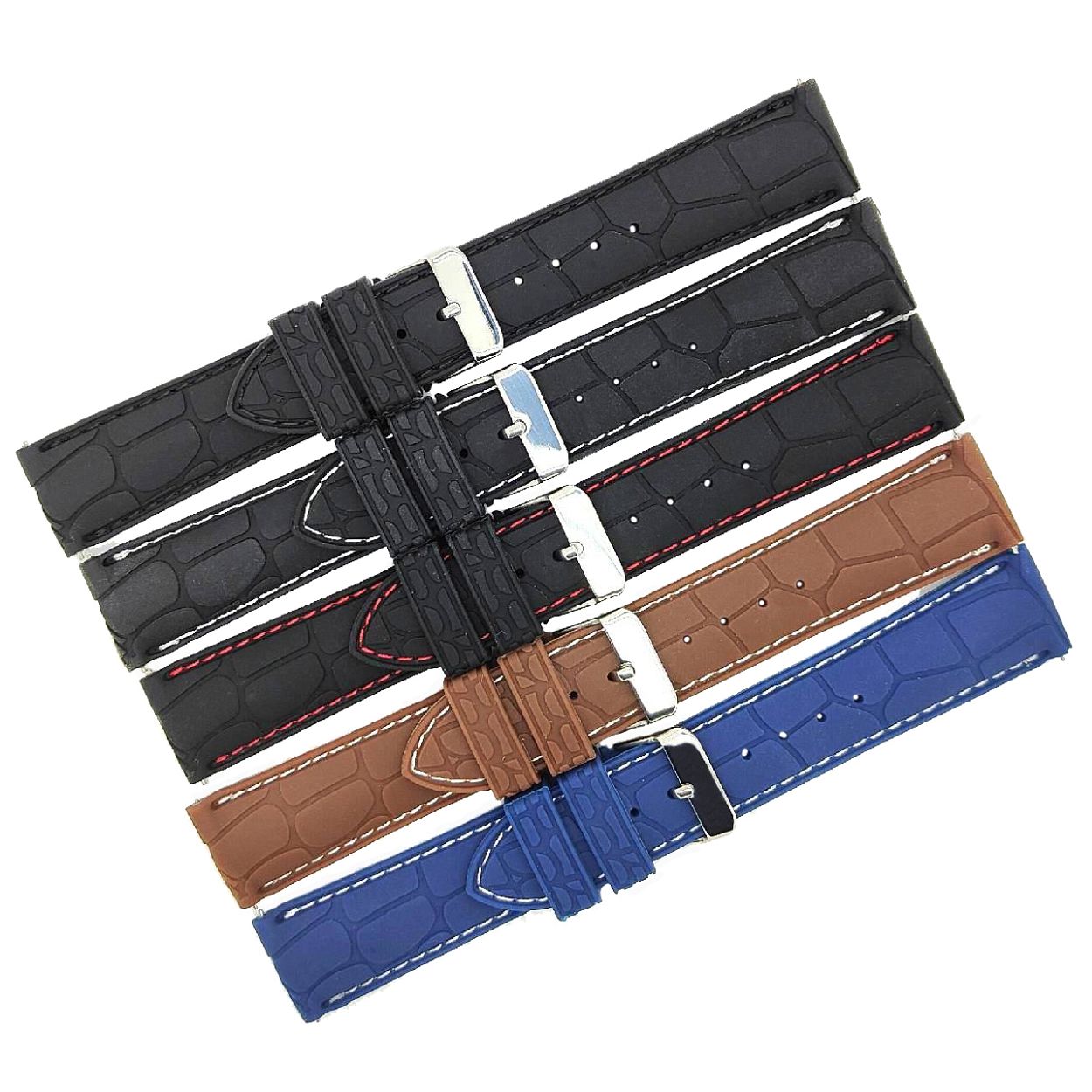 Zeer flexibele bbs siliconen horlogeband met stiksels en snelle release push pins. De horlogeband is uitgevoerd met een roestvrijstalen gesp.