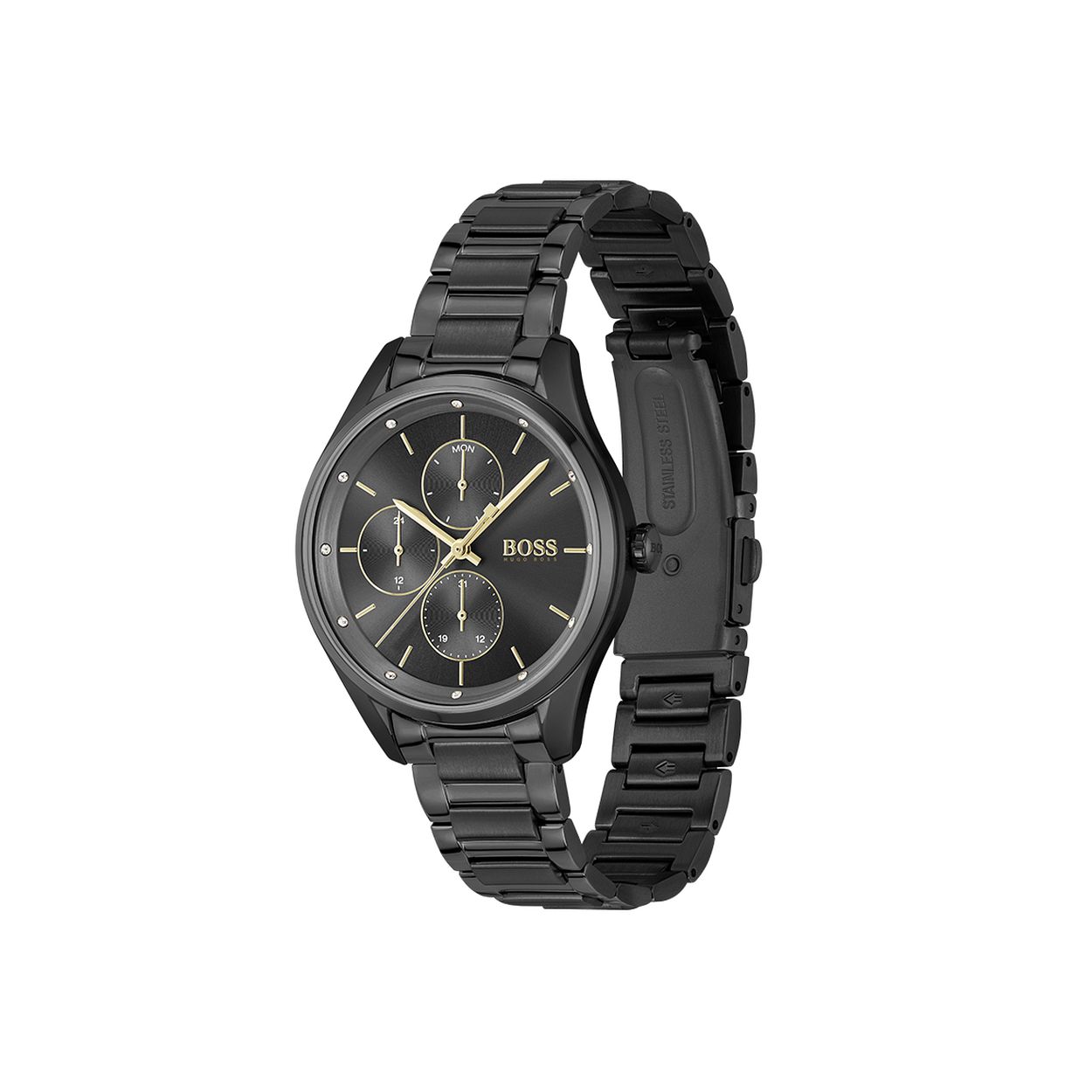 De BOSS GRAND COURSE DAMESHORLOGE HB1502605 is een stijlvolle en functionele polshorloge. Hij heeft een roestvrijstalen kast en band, een zwart wijzerplaat en chronograaf functies. Waterdichtheidsniveau 3 maakt het geschikt voor dagelijks gebruik. Beste gedragen met formele en casual outfits. Een antiallergisch ontwerp maakt het geschikt voor gevoelige huid.
