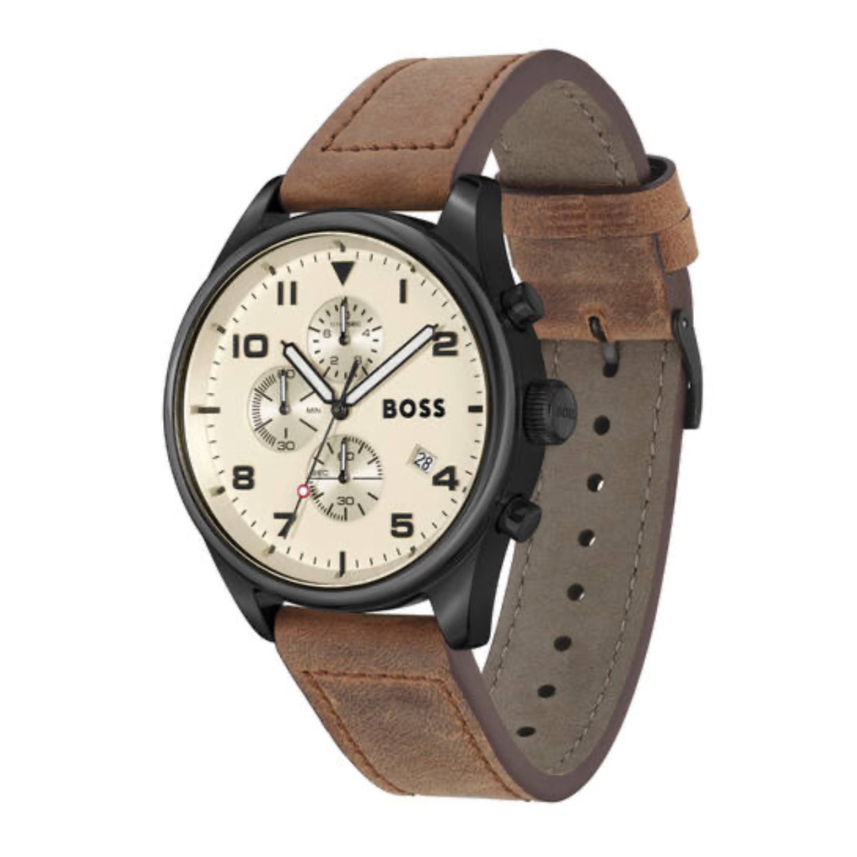 Dit mooie horloge van Hugo Boss de HB1513990 is een horloge met een Quartz uurwerk. Het horloge heeft een diameter van 44 mm, en is dik. De weergave van de tijd is Analoog. Verder is het horloge voorzien van een Mineraal horlogeglas. Het horloge is 5 bar waterdicht, en heeft een band van Leder in de kleur Bruin.