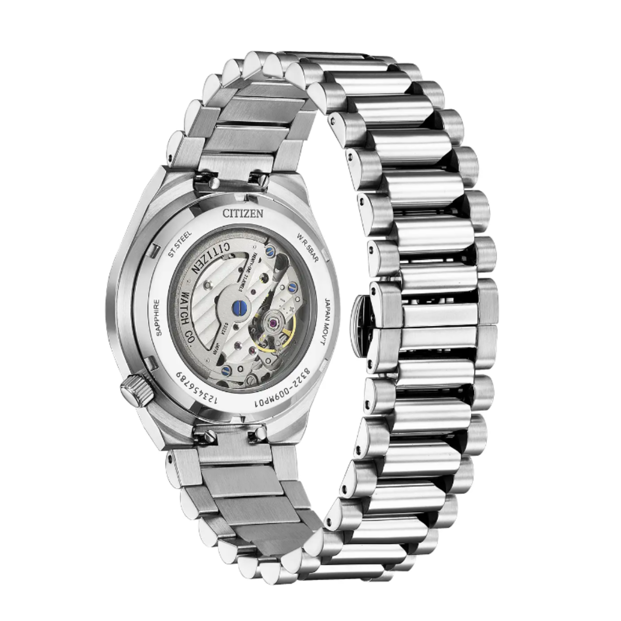 Het Citizen Tsuyosa NK5010-51L automatic heren horloge is uitgerust met een mechanisch uurwerk, energie uit beweging. Het Citizen automaat horloge heeft een zilverkleurige edelstalen kast en band. Het horloge heeft een gestructureerde blauwe wijzerplaat met decentrale secondewijzer, krasvast saffierglas en is tot 5 atm waterdicht. Hoewel ieder automatisch uurwerk zo nauwkeurig mogelijk wordt afgeregeld is een kleine dagelijkse afwijking normaal.
