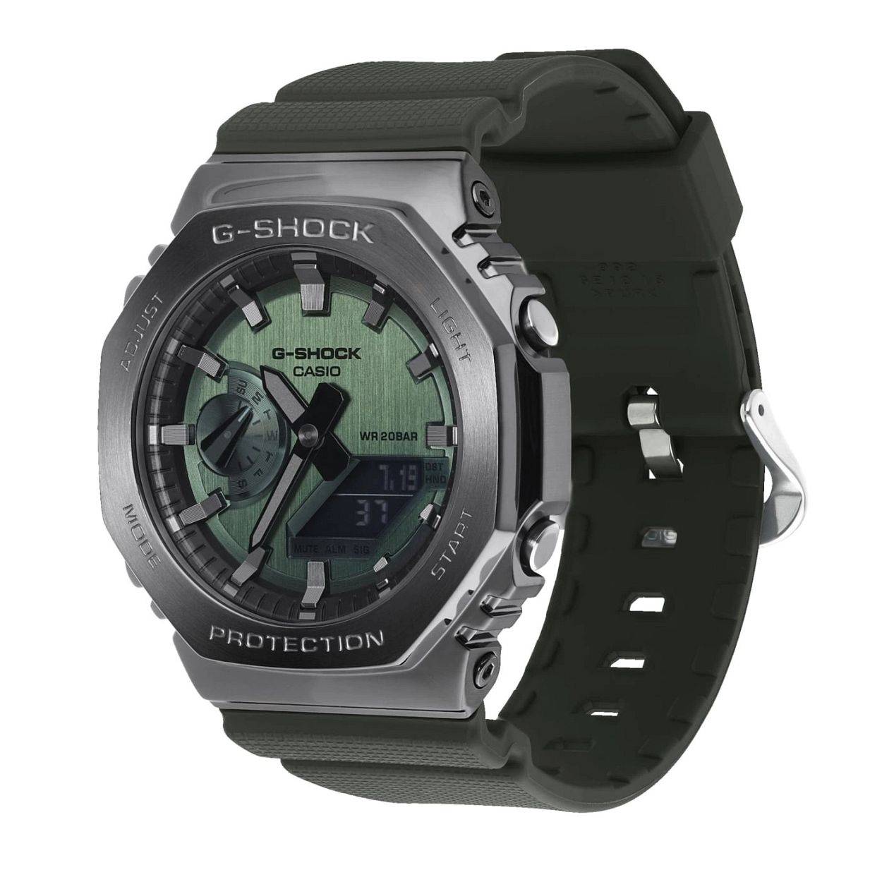 Ga voor een slank, strak en opvallend G-SHOCK-model in een achthoekige versie van het originele iconische design met metalen afwerking. De sterke rand is gemaakt van roestvrij staal met een afwerking van fijne, afgeronde lijnen en staat voor stijl. De wijzerplaat is behandeld met een PVD-afwerking voor een zeer gedetailleerde metallic look die past bij een klassiek metalen G-SHOCK-horloge. Toenemende variaties in de gedetailleerde vierkante stippen op de polsband geven de casual urethaan materialen een extra boost.
