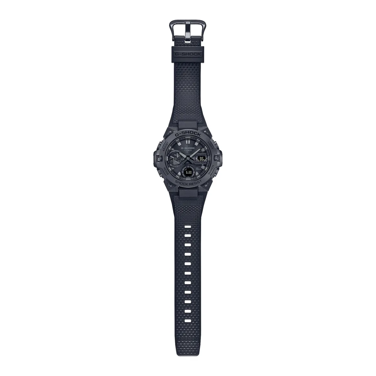 De nieuw uitgebrachte G-Shock GST-B400BB-1A is het eerste G-STEEL GST-B400-model in een standaard zwarte kleurstelling. Het verduisterde uiterlijk heeft een met ionen geplateerde roestvrijstalen ring en een zwarte harsband.