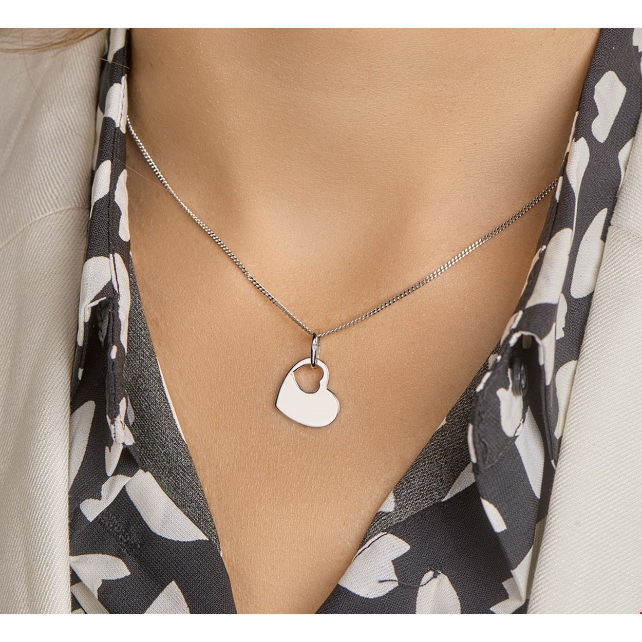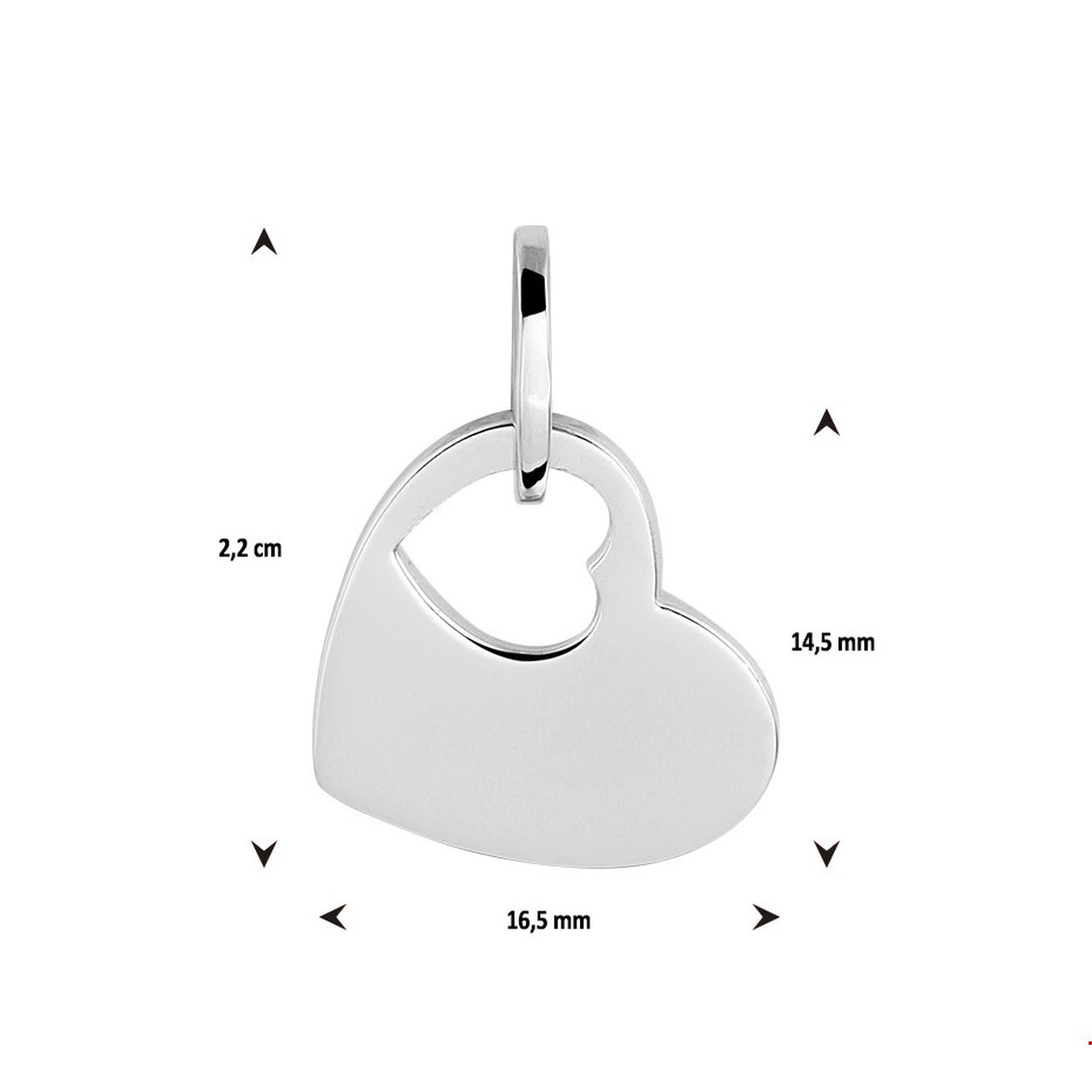 Beschrijving: Gerhodineerd zilveren hanger in de vorm van een hart. De hanger heeft een totale hoogte van 22mm en is goed te combineren met een bijpassend collier uit onze collectie.
