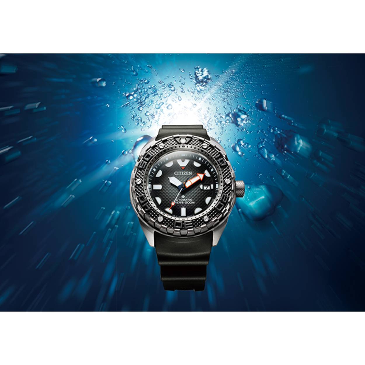 Dit Citizen NB6004-08E Promaster Marine heeft een automatisch uurwerk dat opgewonden wordt door jouw polsbeweging. De kast is 46 mm groot en de dikte is 15 mm. De NB6004-08E is perfect voor iedereen die wel eens zwemt, snorkelt of duikt want het uurwerk is waterdicht tot 200 meter. Ook is deze Citizen Promaster voorzien van een duikring wat zeer handig is voor de echte duikliefhebber.