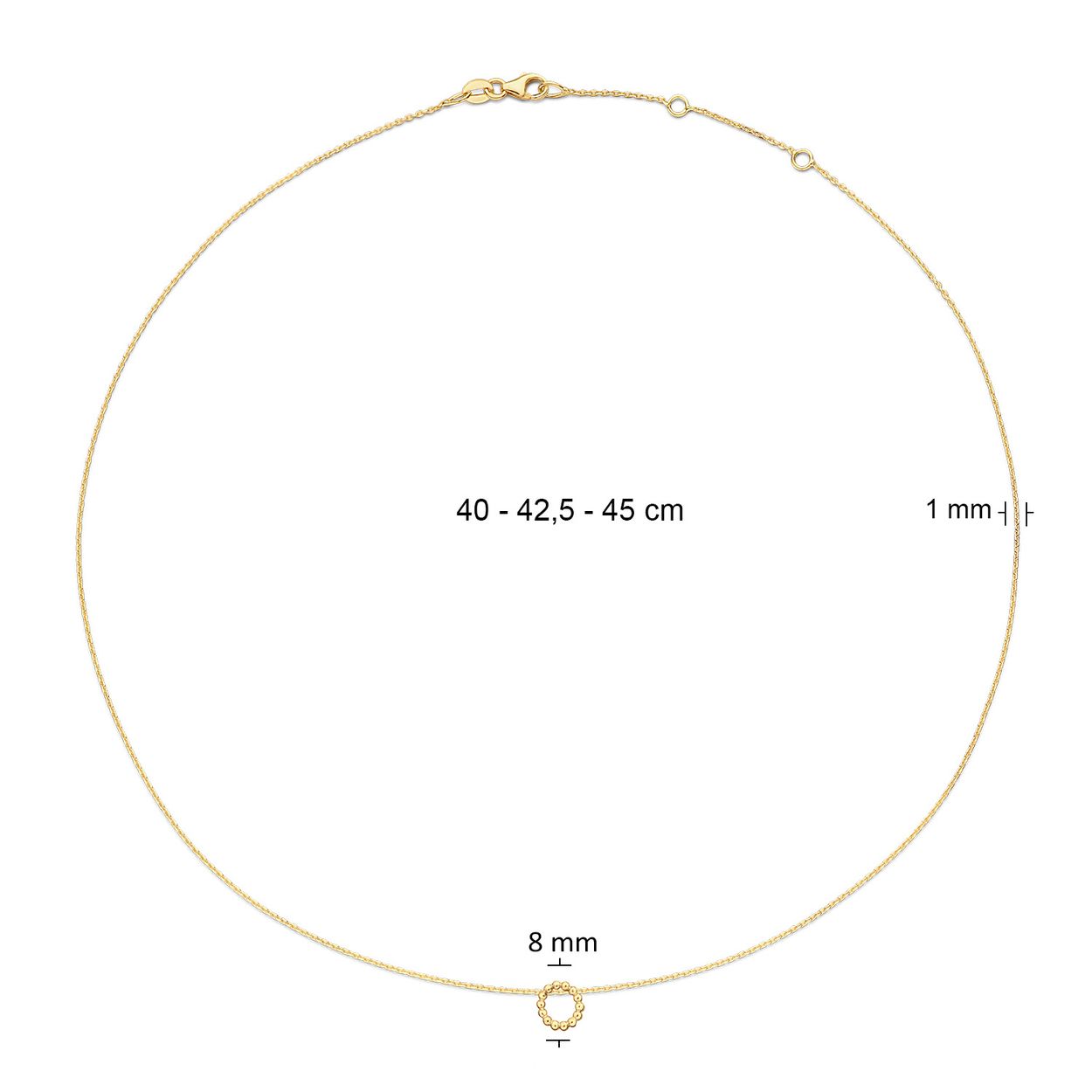 De 14 karaat gouden Bubbly Circle ketting van Jackie swingt met al je lichaamsbewegingen mee. Hierdoor hangt de ketting altijd recht in het midden. Combineer met twee andere Jackie kettingen en ga voor de perfecte layer!