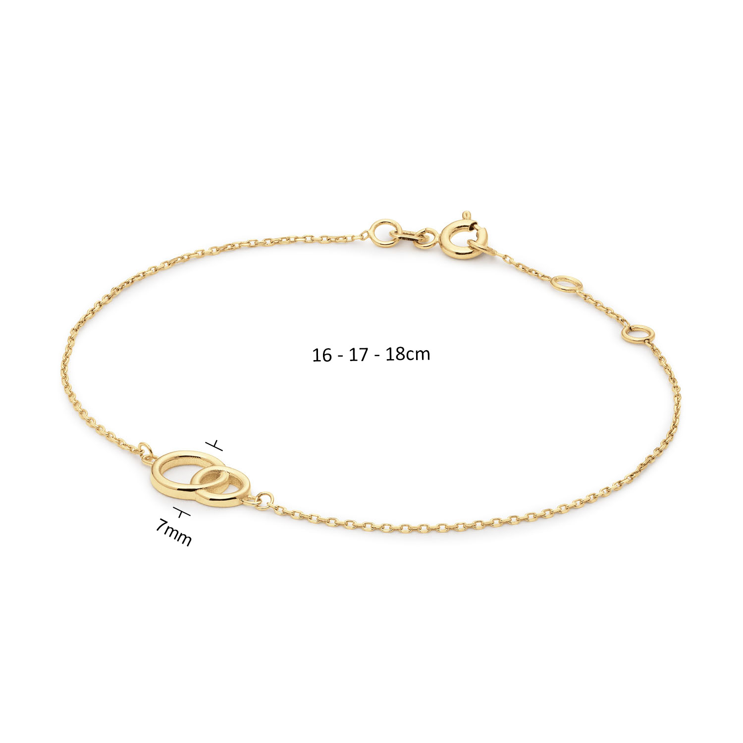Bijna alle armbanden van Jackie zijn voorzien van drie oogjes. Hiermee kun je de armbanden heel gemakkelijk (ver)stellen.