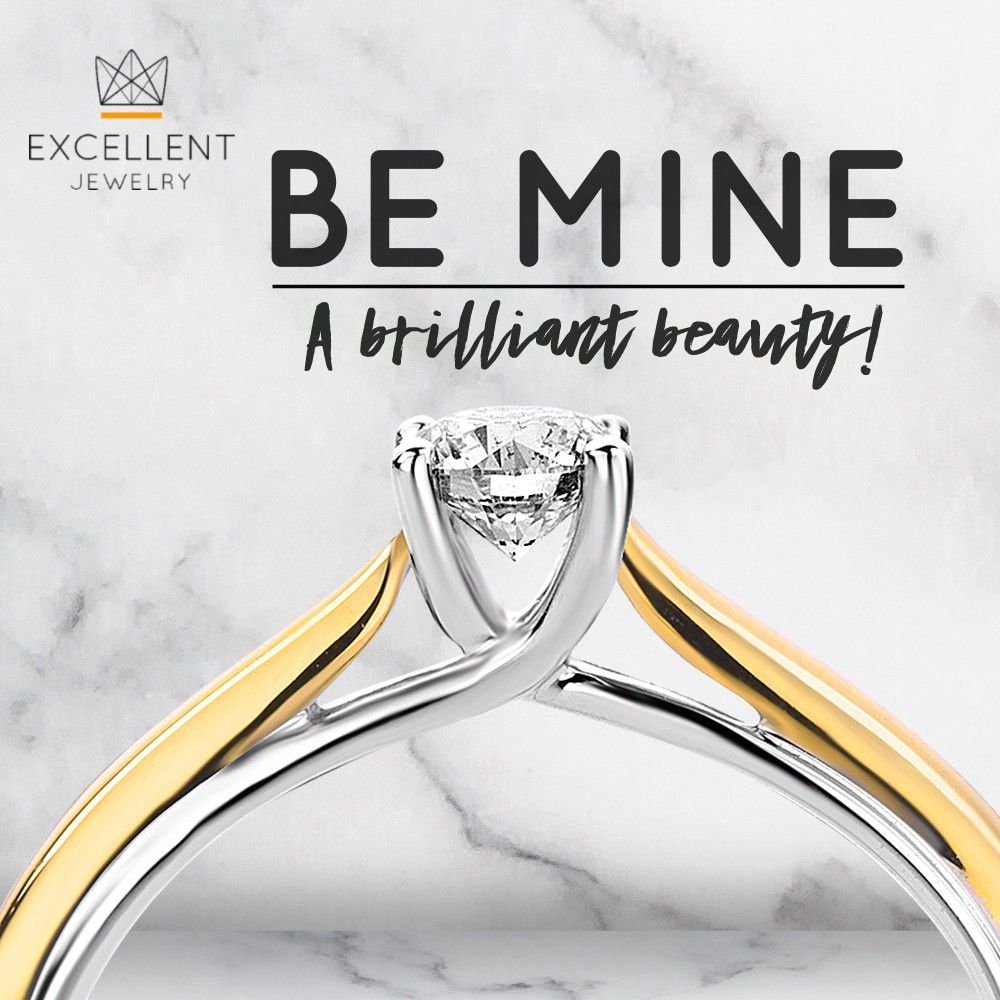 14krt bicolor geel- en witgouden solitairring met briljant van 0.25 crt