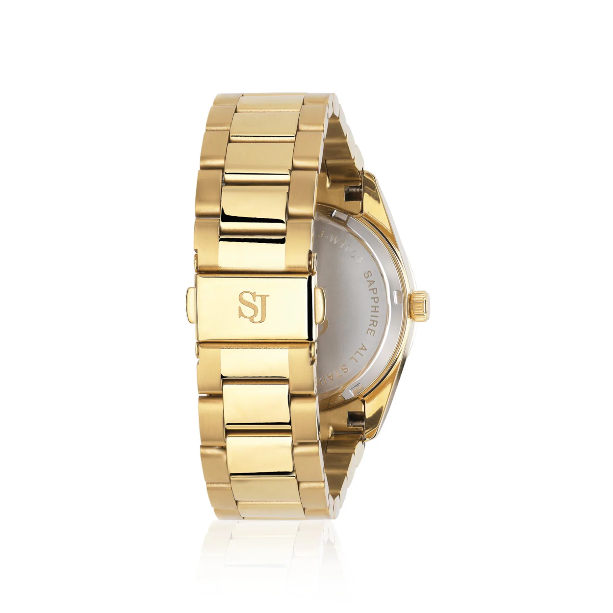 De Sif Jakobs Electra met modelnummer SJ-W1052-CZ-YG is een stijlvolle dameshorloge met een ronde, goudkleurige roestvrijstalen kast van 36 mm en een goudkleurige roestvrijstalen band van 18 mm breed. Met een groene wijzerplaat, saffierglas en quartz uurwerk is het waterbestendig tot 5 ATM en hypoallergeen. Perfect voor dagelijks gebruik en speciale gelegenheden.