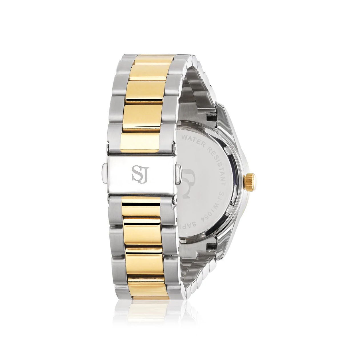 De Sif Jakobs Electra horloge, modelnummer SJ-W1054-CZ-YG, is een elegante polshorloge met een kastgrootte van 36 mm en een goud-zilver gekleurde band. Het horloge heeft een handige datumfunctie. Hoewel het niet antiallergisch is, biedt het toch stijl en functionaliteit. Perfect te dragen bij zowel formele als informele gelegenheden voor een verfijnde uitstraling.