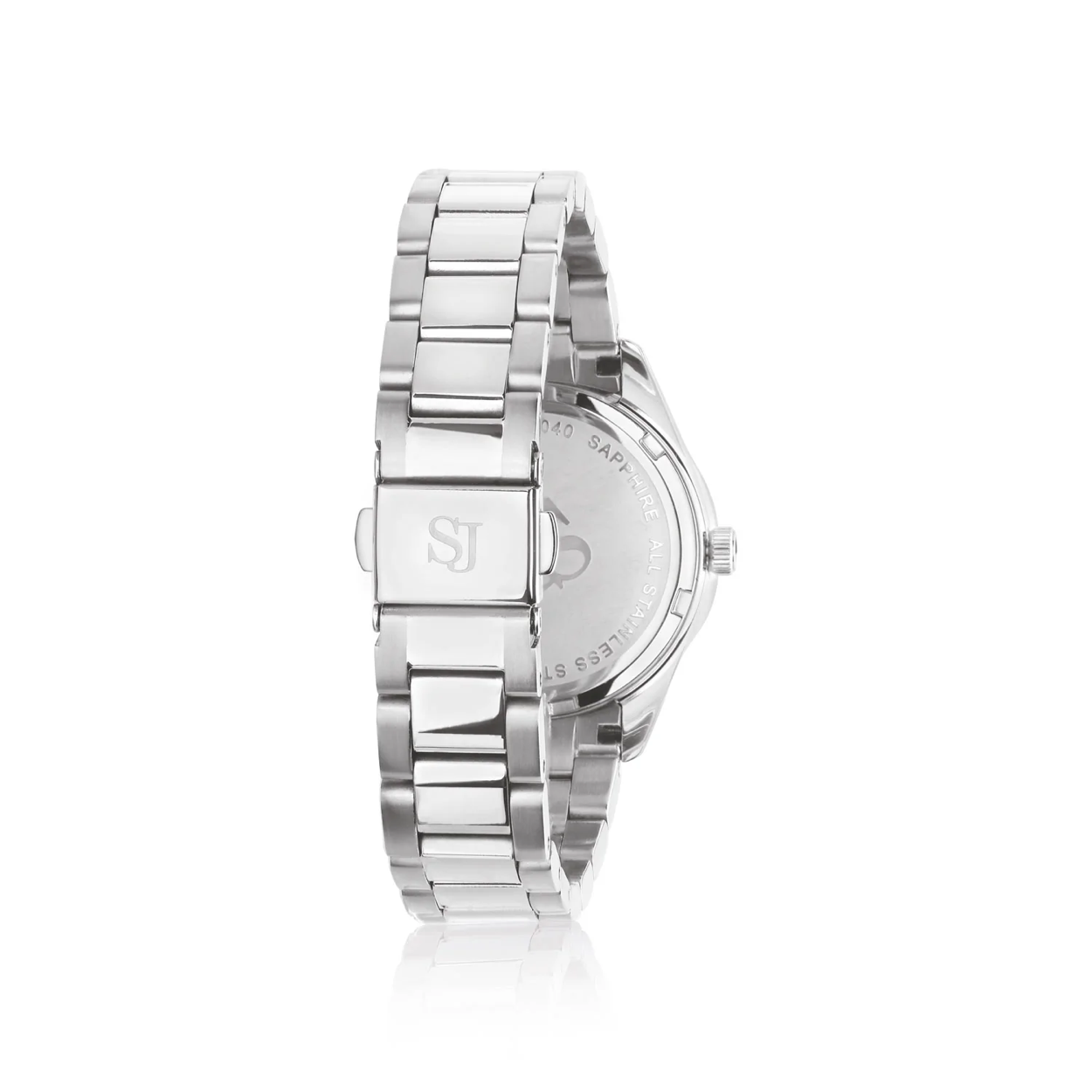 De Sif Jakobs horloge Joëlle met modelnummer SJ-W1040-CZ is een elegant polshorloge met de volgende kenmerken: een ronde kast van 32,5 mm van roestvrij staal met saffierglas, een zilverkleurige wijzerplaat en band, een quartz uurwerk en waterbestendigheid niveau 3. Perfect voor dagelijks gebruik en formele gelegenheden door zijn stijlvolle en klassieke uitstraling.