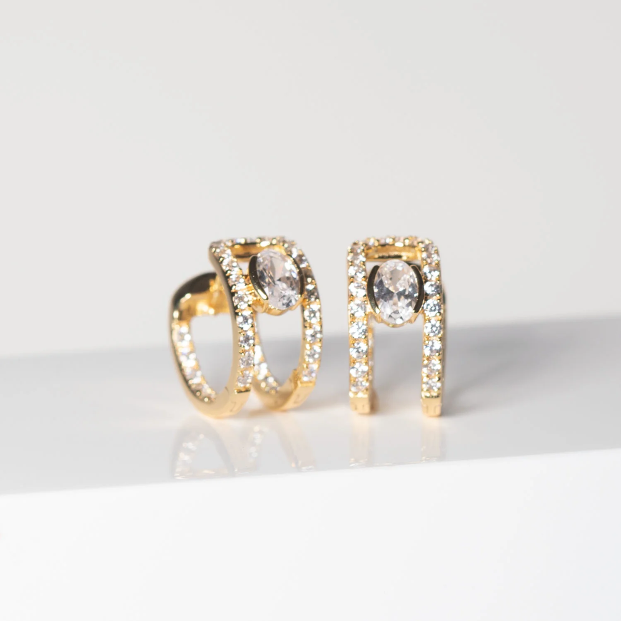 Oorbellen gemaakt van 18 karaats verguld 925 sterling zilver, gepolijst oppervlak en hoorn met facetgeslepen witte zirkonia