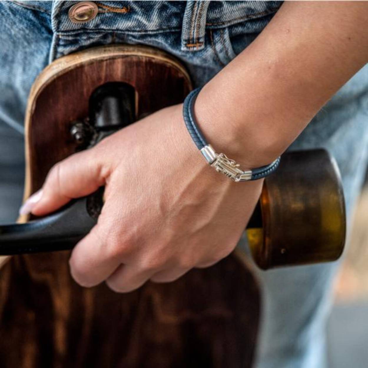 Deze leren armband met zilveren slot van het merk SILK komt uit de Zipp lijn.