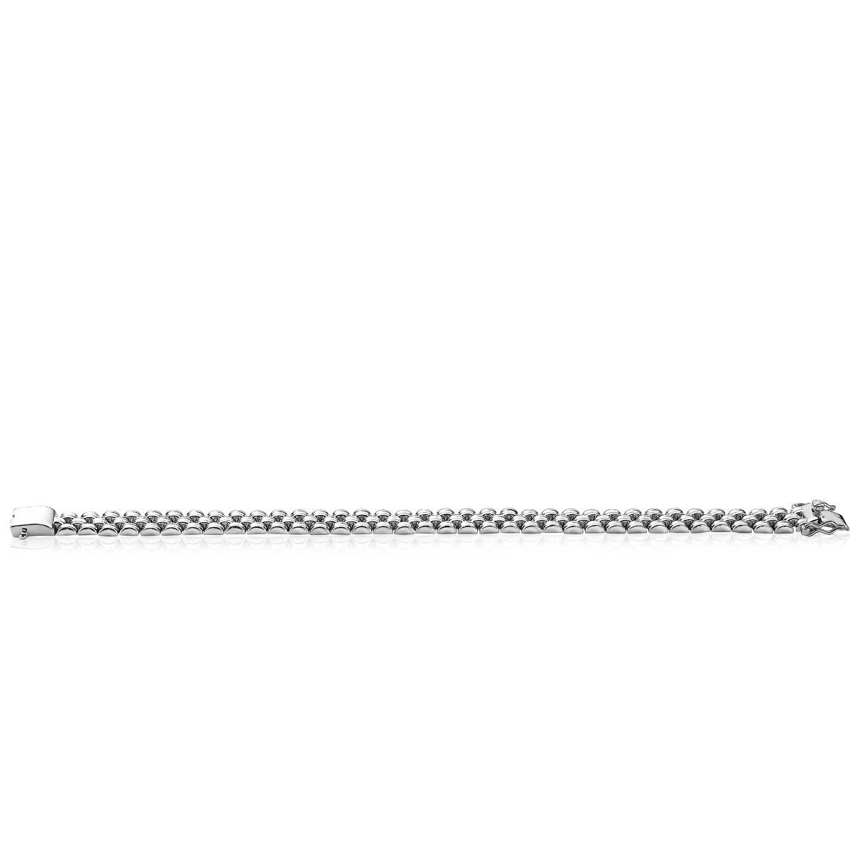 ZINZI zilveren schakel armband van 9mm breed met drie rondvormige schakelbanen. Deze armband valt soepel rond de pols en heeft een luxe sluiting. Exclusief ontworpen door mode-ontwerper Mart Visser en draagt herkenbaar zijn signatuur. Vervaardigd van eerste gehalte zilver (925) en met extra rodiumlaag voor een langdurige glans.