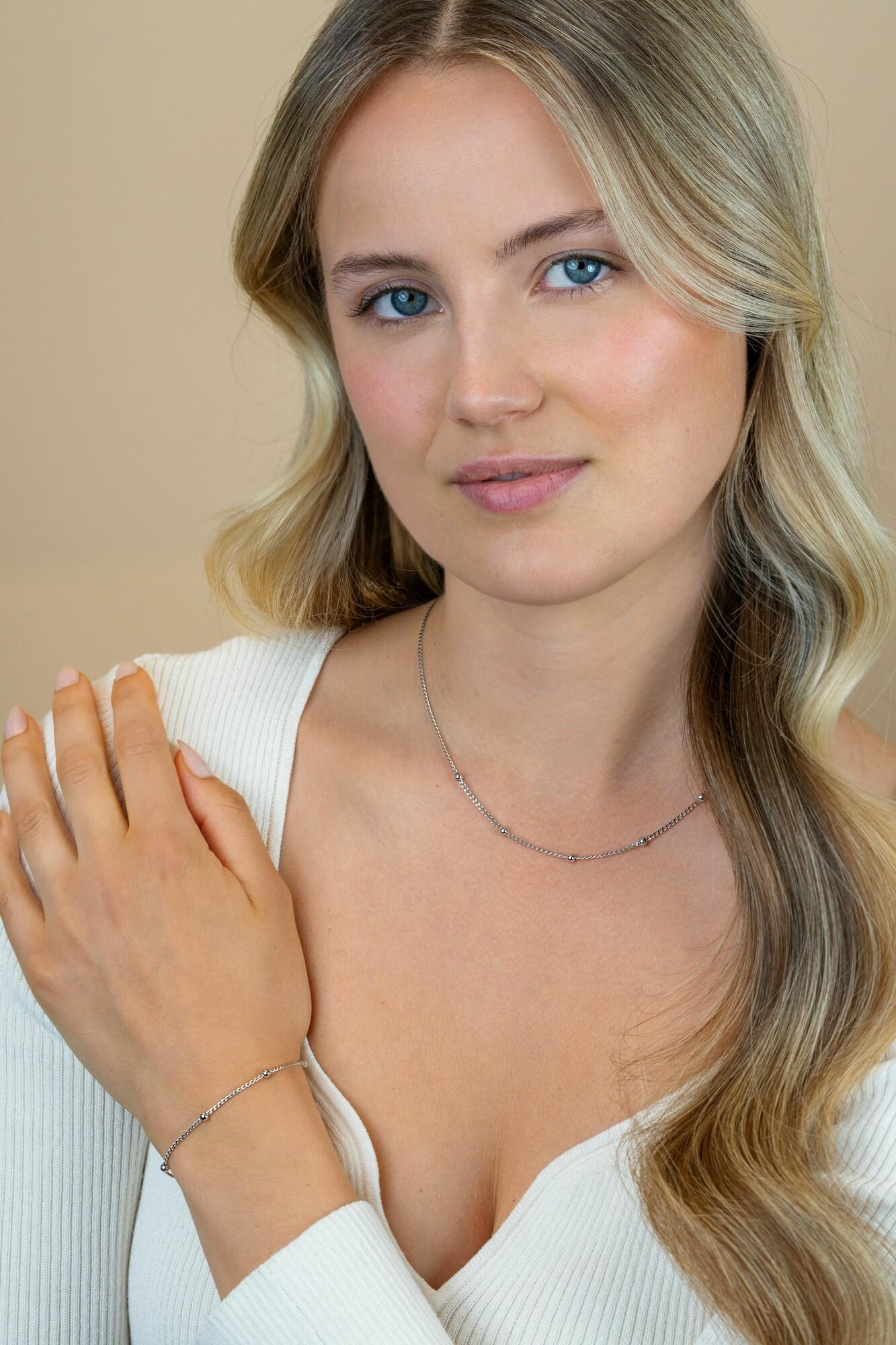 ZINZI zilveren gourmet schakelarmband met vijf glanzende bolletjes. Voorzien van een verlengkettinkje voor optimaal comfort. Vervaardigd van eerste gehalte zilver (925) en voorzien van een extra rodiumlaag voor een langdurige glans.