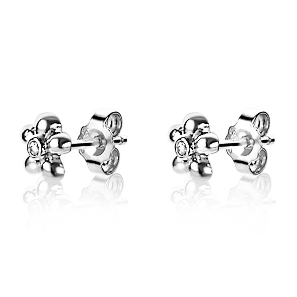 ZINZI zilveren oorknoppen bloem wit 5mm ZIO1876